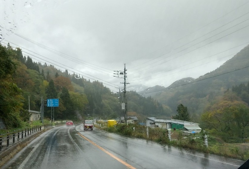 降ったりやんだり、不安定な天気の中、国道8号線を富山方面へ走ります。