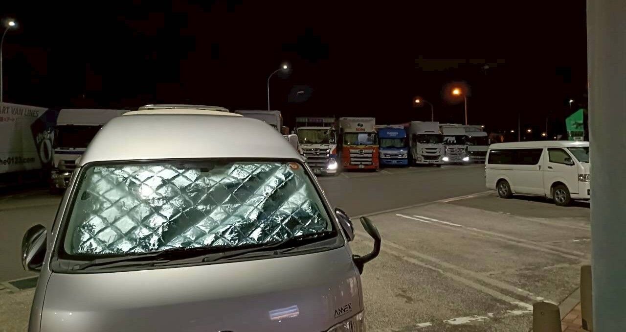 PAは夜になると大型車がびっしり。