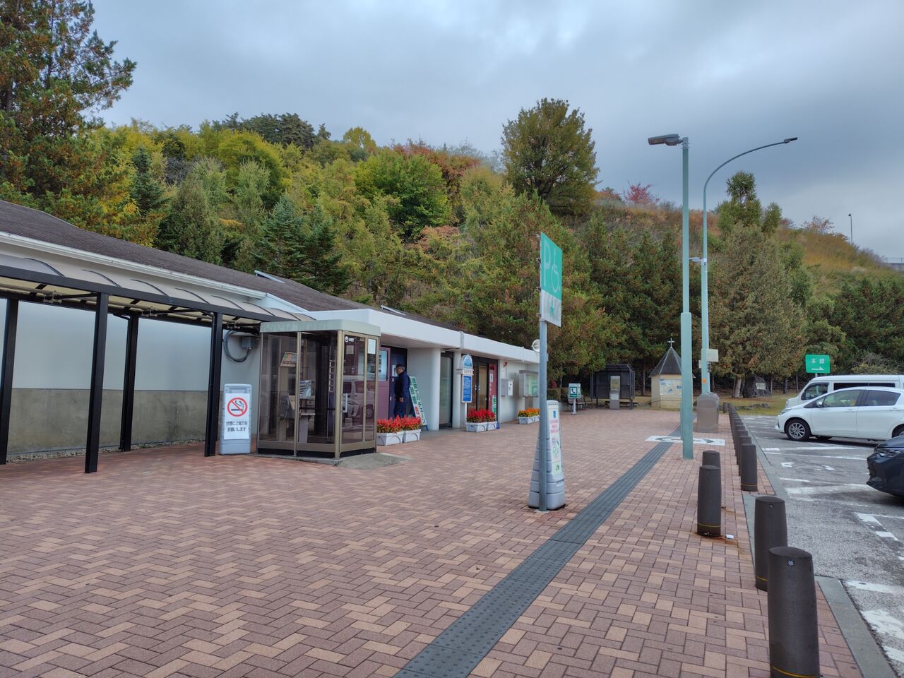 そんな訳で、スマートIC側の駐車場のほうが静かですが、そっちにはトイレが無い😣