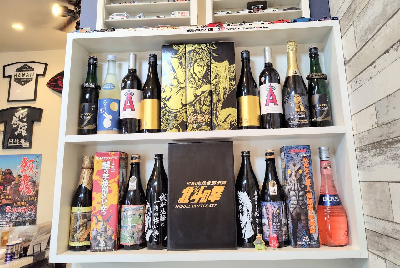 北斗の拳や花の慶次のお酒も飾ってあるよ👏