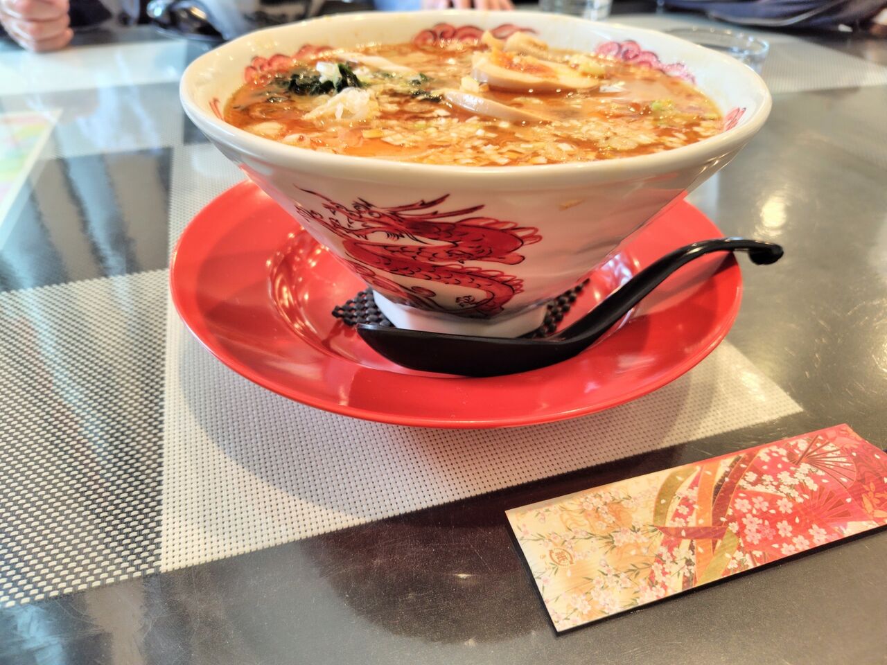 レンゲを持てないから、麺をすすった後にスムーズにスープにいけない〜〜💦