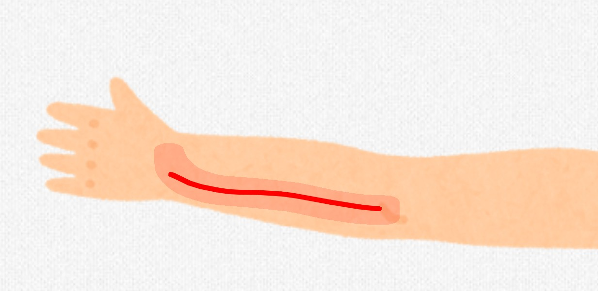 骨折部分はもちろん動かすと痛いんだけど、最近は腕の外側の筋?が痛い。