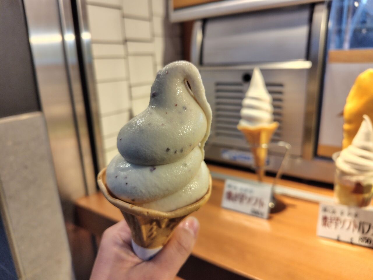 まずはご当地ソフトの焼き芋ソフトクリームを。